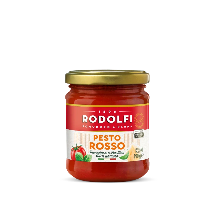 Pesto Rosso con basilico e Parmigiano 190 gr Rodolfi - Červené pesto s bazalkou a ParmezánomSkladom3,99 EUR/ ks3,35 EUR bez DPH